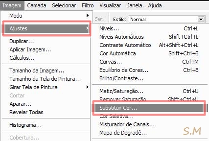 4. Vá ate Imagem> Ajustes> Substituir Cor.